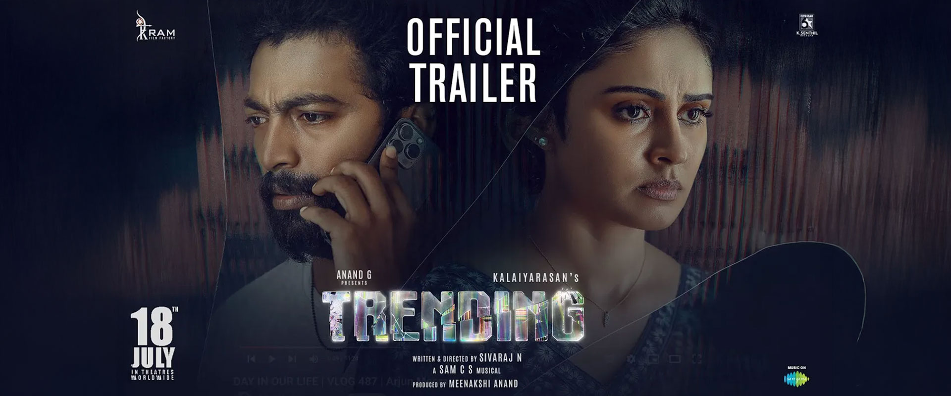 Watch the official trailer of ‘Trending’, starring Kalaiyarasan and Priyalaya. Directed by Sivaraj N with music by Sam C S, this psychological thriller explores modern relationships shaped by social media. In theatres worldwide from July 18, 2025.